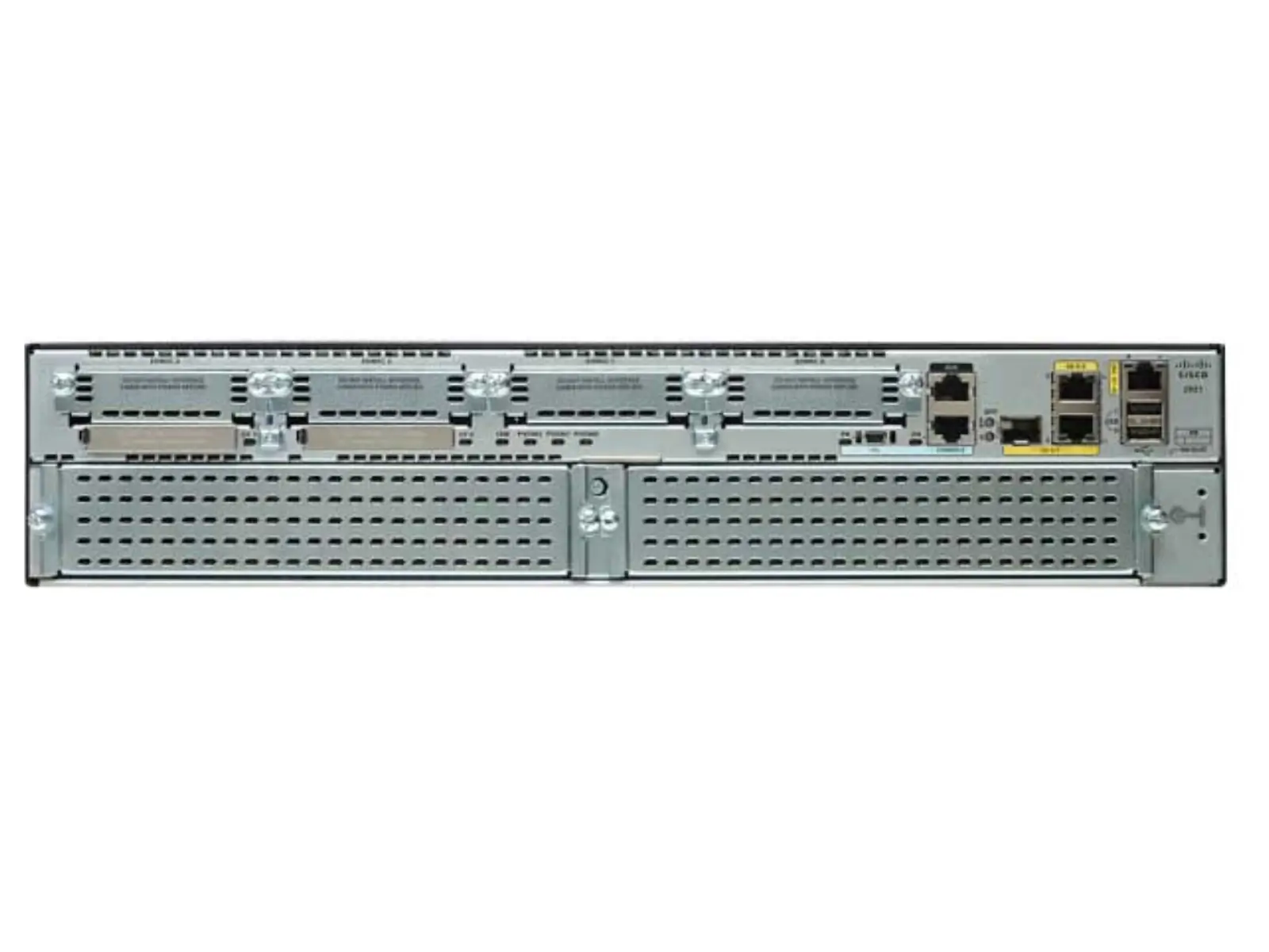 | اسلاتهای توسعه | 4 اسلات Enhanced High-Speed WAN Interface Card (EHWIC): برای افزودن ماژولهای WAN، سریال یا ارتباطات اضافی. 3 اسلات DSP (Digital Signal Processor): برای پردازش تماسهای VoIP و خدمات صوتی پیشرفته. 1 اسلات ISM (Internal Services Module): جهت افزودن قابلیتهای امنیتی و خدماتی. 1 اسلات CompactFlash: برای افزایش ظرفیت ذخیرهسازی و انعطافپذیری. |